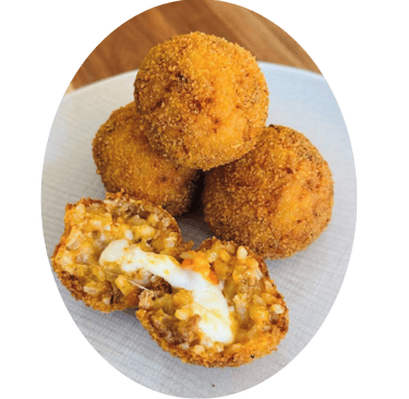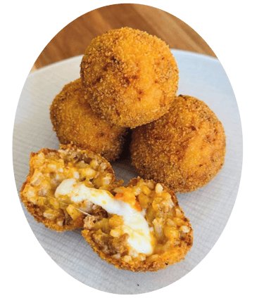 Traditionele Siciliaanse lekkernijen zoals arancini - krokante risottoballetjes met een smaakvolle vulling.