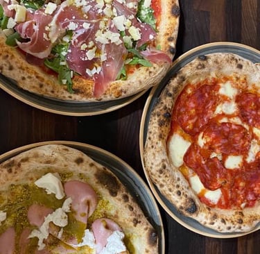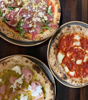 Ambachtelijke, met de hand bereide pizza's, steenoven-gebakken met de beste verse ingrediënten.